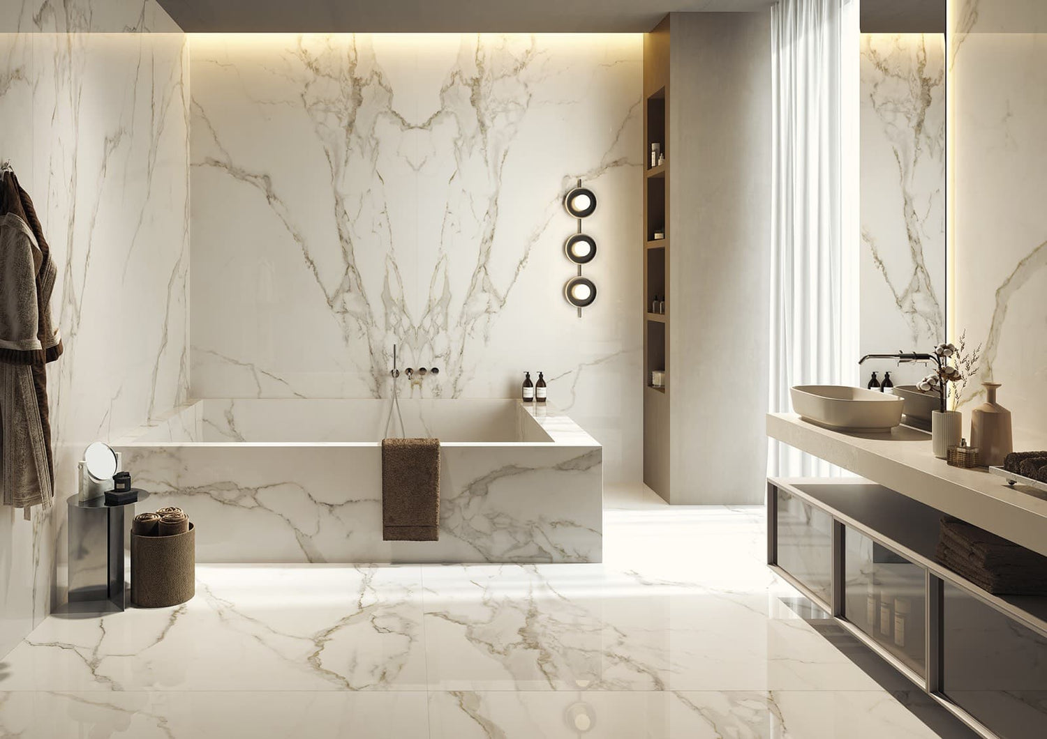 Fugenlose Bäder stehen für minimalistisches Design, edle Ästhetik und höchsten Komfort. Ob in Marmor-, Beton- oder Steinoptik – mit großflächigen Fliesen entstehen moderne Wellness-Oasen.